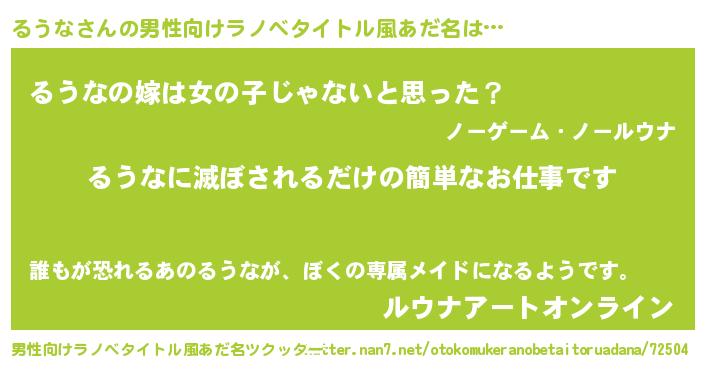 | 恥ずかしいあだ名 | 『ルウリンリン』『プリティーるうな』 |
