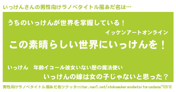 | 意味不明あだ名 | 『住所不定無職いっけん(41歳)』 |