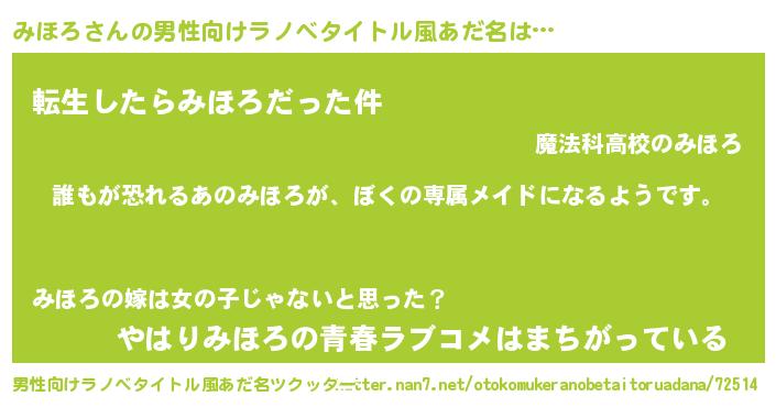 | ヘコむあだ名 | 『みほろ(笑)』『豆乳』『みほを』 |