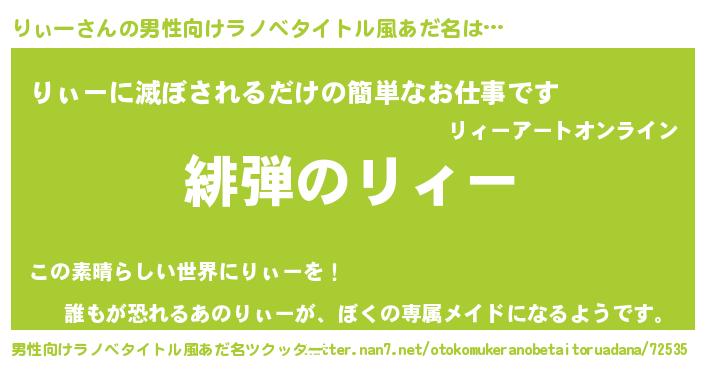 | 胡散臭い通販商品みたいなあだ名 | 『絶対に幸福をもたらす健康食品…その名も「りぃー」』 |