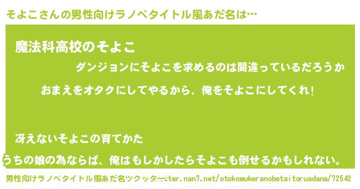 | 意味不明あだ名 | 『眠気覚ましガムそよこ味』『自称そよこ』 |