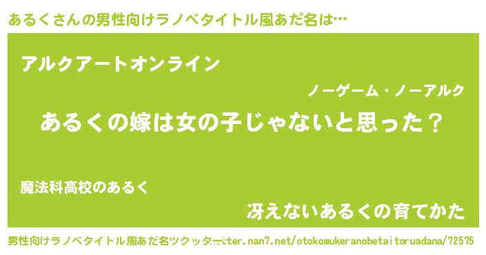 | 女子向けラノベタイトル風あだ名 | 『あるく様がみてる』『死神あるくの再婚』 |