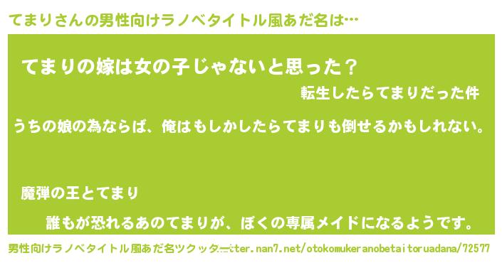 | 女子向けラノベタイトル風あだ名 | 『てまり伯爵の花嫁』『てまり様がみてる』 |