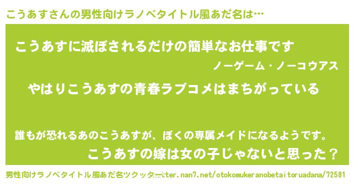 | 女子向けラノベタイトル風あだ名 | 『こうあすの雑貨屋さん』 |
