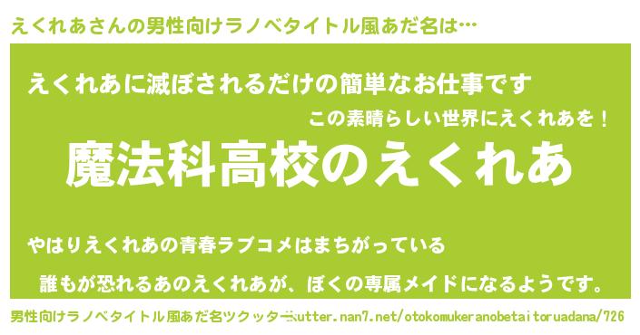 女子向けラノベタイトル風あだ名 | 『えくれあなんてお断りですっ。』 |