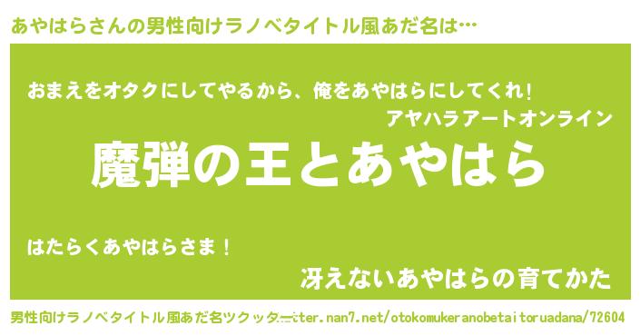 | ヒーロー風カッコイイあだ名 | 『仮面アヤダー』『正義の使者あやはら』 |