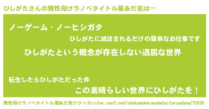 | 女子向けラノベタイトル風あだ名 | 『異世界で失敗しない100のひしがた』 |