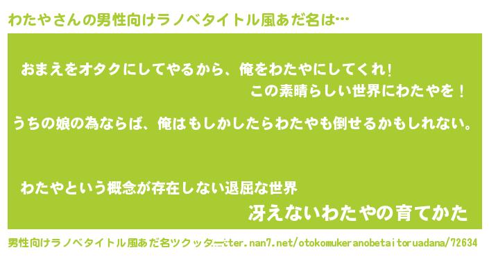 | ヒーロー風カッコイイあだ名 | 『ウルトラわたやマン』『仮面ワタダー』 |