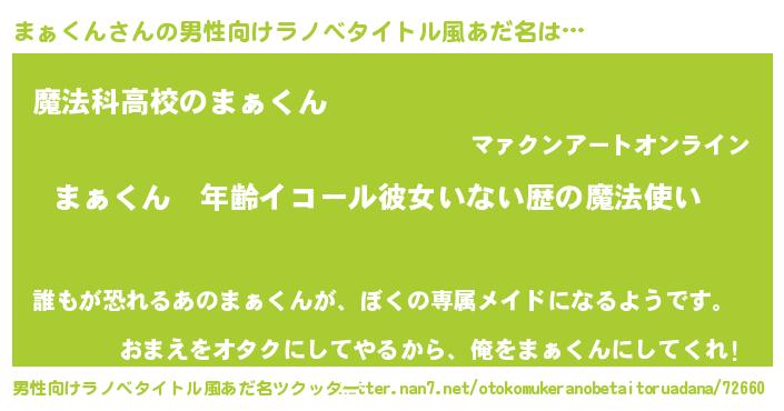 | 女子向けラノベタイトル風あだ名 | 『まぁくんの玉の輿計画!』 |