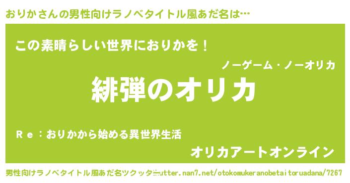 | ヒーロー風カッコイイあだ名 | 『仮面オリダー』『スーパーオリカ』 |