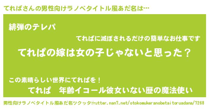 | 女子向けラノベタイトル風あだ名 | 『てれぱ様がみてる』 |