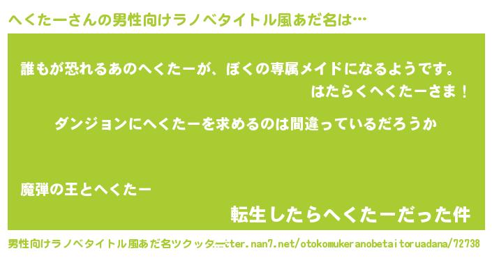 | 胡散臭い通販商品みたいなあだ名 | 『信頼と実績のサプリメント…その名も「へくたー」』 |