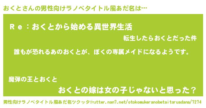| 女子向けラノベタイトル風あだ名 | 『異世界でカフェおくとを開店しました。』 |