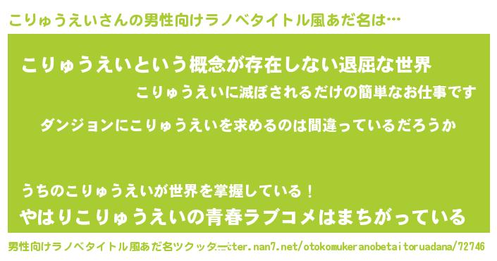 | 胡散臭い通販商品みたいなあだ名 | 『信頼と実績のネックレス…その名も「こりゅうえい」』 |