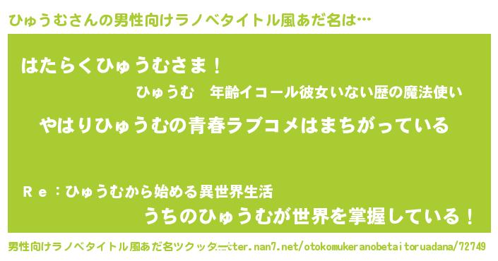 ひゅうむさんの男性向けラノベタイトル風あだ名をツクッター!