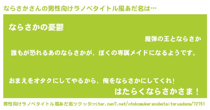 | ヘコむあだ名 | 『ならさか(苦笑)』『ならにー』 |