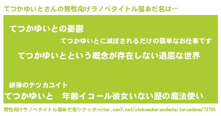 | 胡散臭い通販商品みたいなあだ名 | 『来世でも幸せになれる水素水…その名も「てつかゆいと」』 |