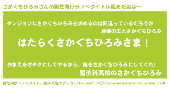 | ポケモン風あだ名 | 『サカゴンZ』『ヒサカグチヒロミ』 |