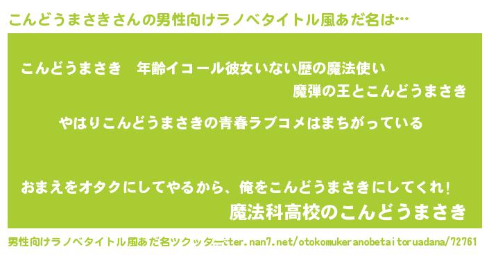 | 女子向けラノベタイトル風あだ名 | 『こんどうまさきの雑貨屋さん』 |