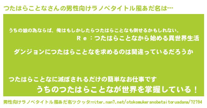 | 女子向けラノベタイトル風あだ名 | 『つたはらことなの卵を拾いまして』 |