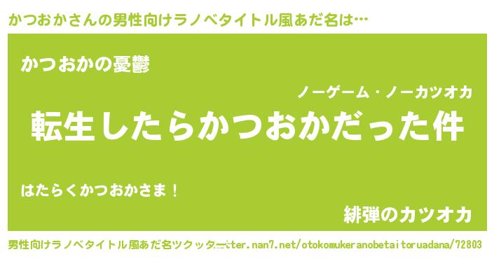| 胡散臭い通販商品みたいなあだ名 | 『モテモテ間違いなしブレスレット…その名も「かつおか」』 |