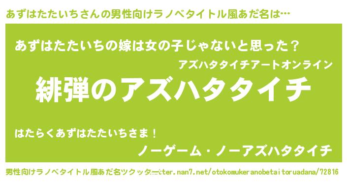 | 胡散臭い通販商品みたいなあだ名 | 『信頼と実績のサプリメント…その名も「あずはたたいち」』 |