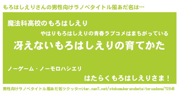 | 胡散臭い通販商品みたいなあだ名 | 『テレビで話題のアガリクス…その名も「もろはしえり」』 |