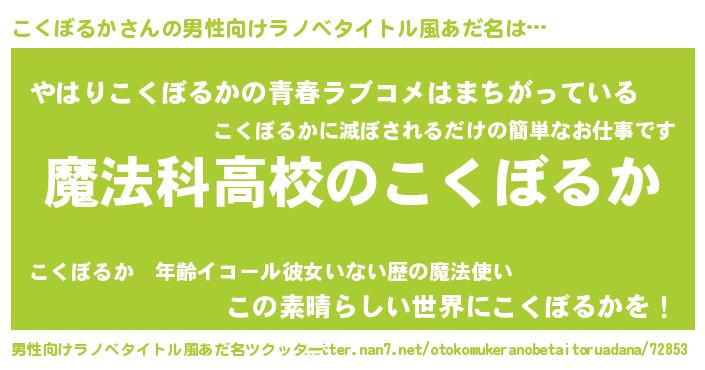 | 女子向けラノベタイトル風あだ名 | 『こくぼるかなんてお断りですっ。』 |