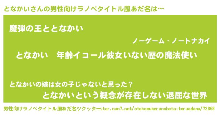 | 女子向けラノベタイトル風あだ名 | 『となかいの玉の輿計画!』 |