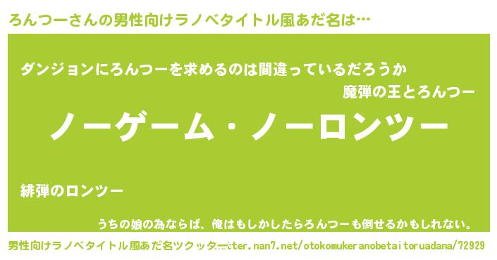 | ヒーロー風カッコイイあだ名 | 『慈愛の使者ろんつー』『暗黒騎士ロン』 |