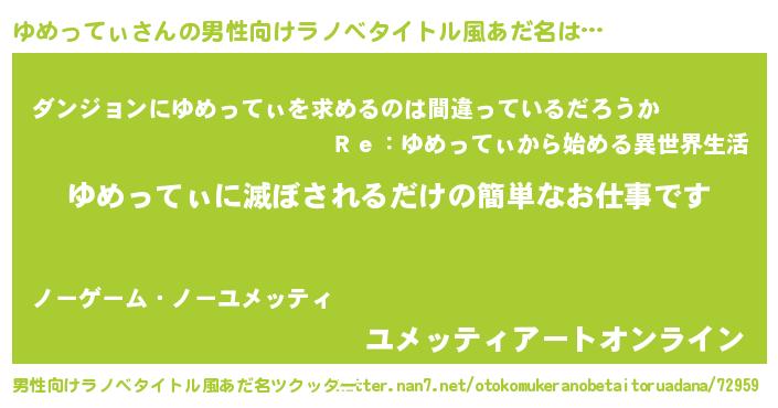 | 女子向けラノベタイトル風あだ名 | 『横柄ゆめってぃと宰相陛下』 |