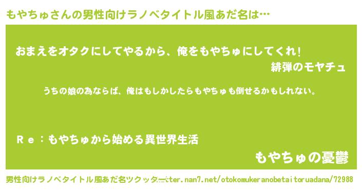 | 女子向けラノベタイトル風あだ名 | 『もやちゅの婚約者』『闇のもやちゅ』 |