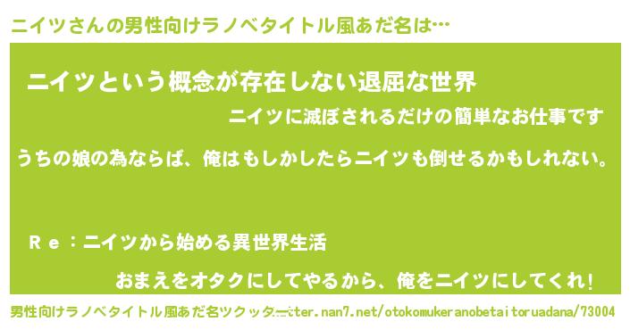 | ファンタジー風あだ名 | 『エターナルニイツー』『ニイディッシュ』 |