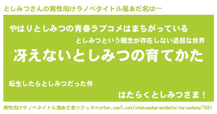 | 胡散臭い通販商品みたいなあだ名 | 『世界が平和になる高級そうな壺…その名も「としみつ」』 |