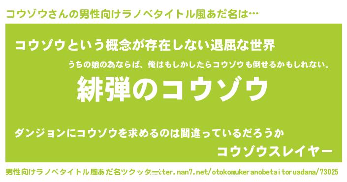 | 胡散臭い通販商品みたいなあだ名 | 『絶対に幸福をもたらす水素水…その名も「コウゾウ」』 |