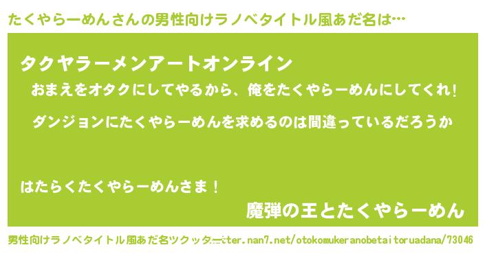 | 女子向けラノベタイトル風あだ名 | 『たくやらーめんは平凡を望む』 |