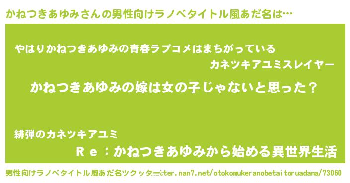 かねつきあゆみさんの男性向けラノベタイトル風あだ名をツクッター!