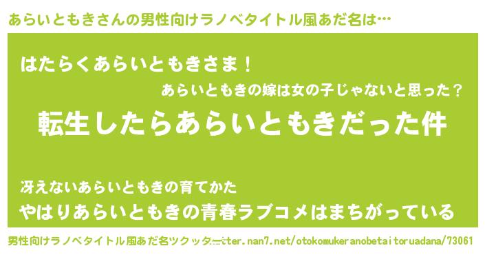 | 胡散臭い通販商品みたいなあだ名 | 『世界が平和になる高級そうな絵画…その名も「あらいともき」』 |