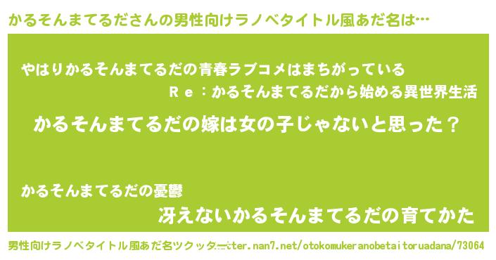| ポケモン風あだ名 | 『ヒカルソンマテルダ』『カルソダネ』 |