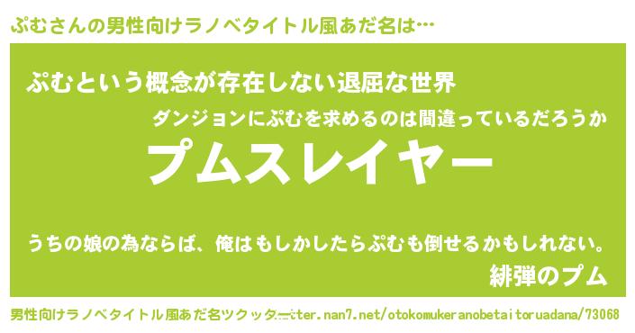 | ポケモン風あだ名 | 『プムキング』『ゼニプム』『ヒプム』 |