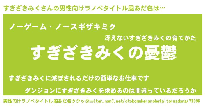 | 女子向けラノベタイトル風あだ名 | 『(仮)すぎざきみくのやんごとなき事情』 |