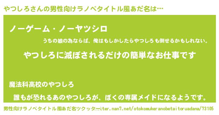 | ヒーロー風カッコイイあだ名 | 『天空の使者やつしろ』『ネオヤツシロ』 |