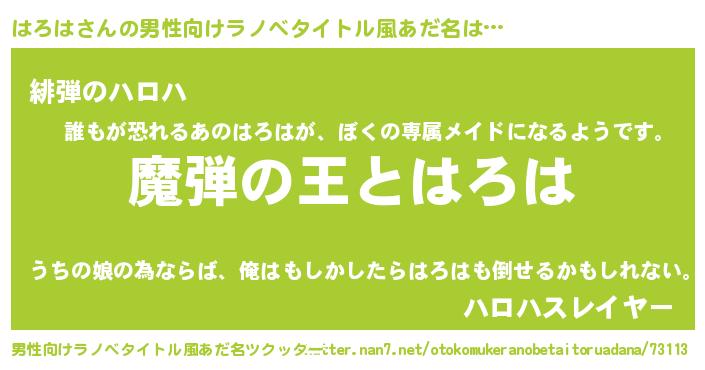 | ヒーロー風カッコイイあだ名 | 『仮面ハロダー』『ネオハロハ』 |