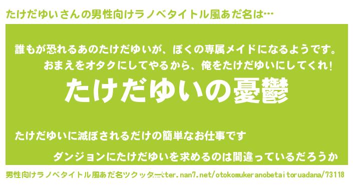 | 胡散臭い通販商品みたいなあだ名 | 『モテモテ間違いなし霊験あらたかなお札…その名も「たけだゆい」』 |