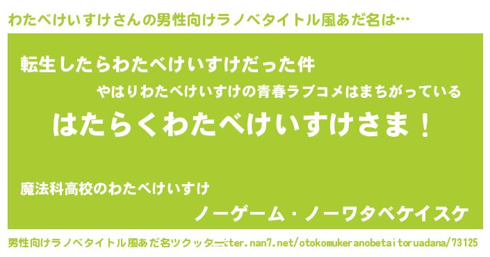 | 胡散臭い通販商品みたいなあだ名 | 『お金では代えられないイリジウム磁石…その名も「わたべけいすけ」』 |