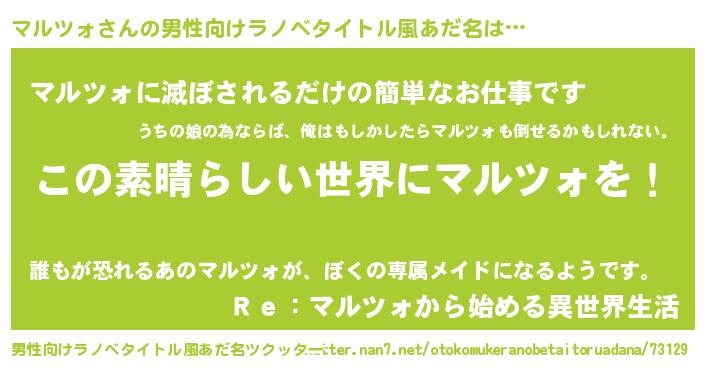 | 意味不明あだ名 | 『住所不定無職マルツォ(12歳)』 |