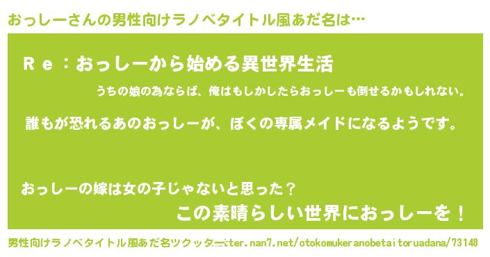 | 女子向けラノベタイトル風あだ名 | 『異世界でカフェおっしーを開店しました。』 |