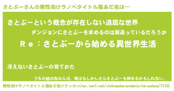 | 胡散臭い通販商品みたいなあだ名 | 『芸能人もオススメする高麗人参…その名も「さとぶー」』 |