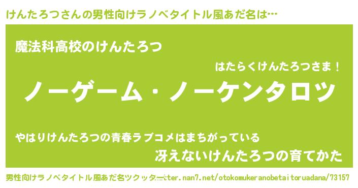 | 女子向けラノベタイトル風あだ名 | 『死神けんたろつの再婚』 |