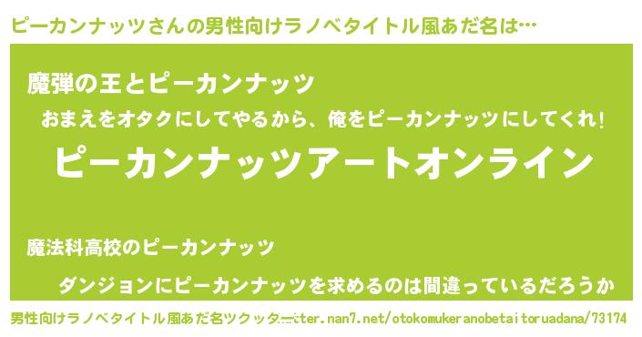 | 胡散臭い通販商品みたいなあだ名 | 『モテモテ間違いなし霊験あらたかなお札…その名も「ピーカンナッツ」』 |